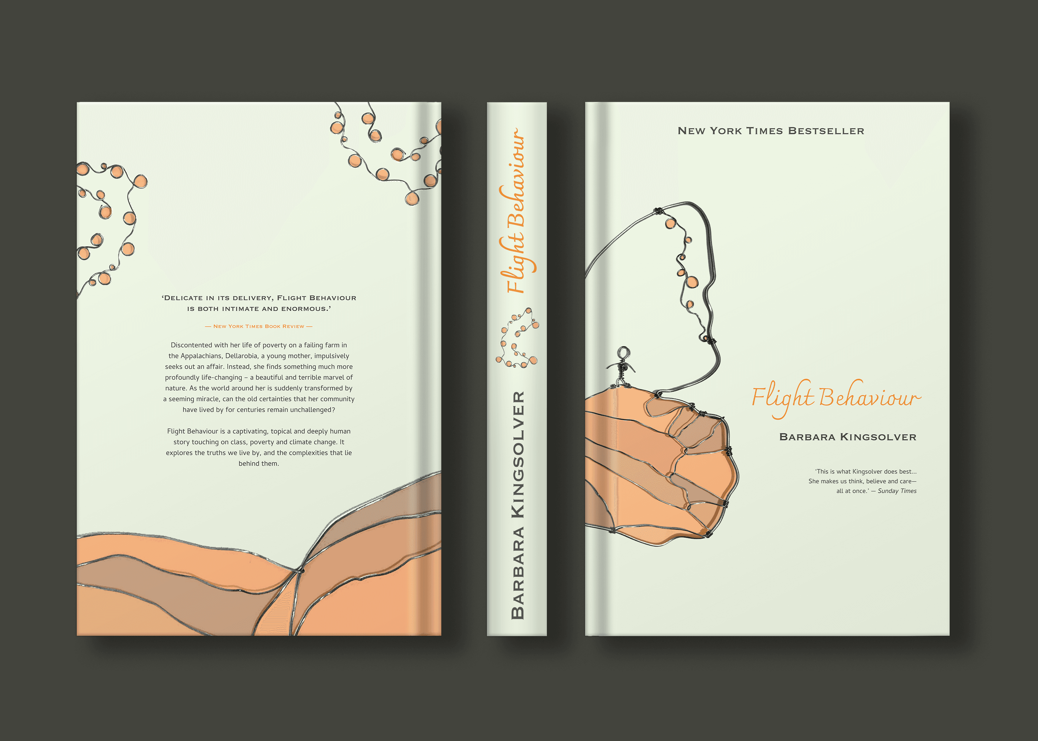 I re–designed the cover for Barbara Kingsolver's award–winning novel, 'Flight Behaviour', as part of a university assessment. Thin, wire frames were selected as the primary medium to create the re–design as an homage towards the delicate themes of conservation vs. conservatism, evidence vs. belief, life's intricacies, and the bending of perspectives explored within the novel.