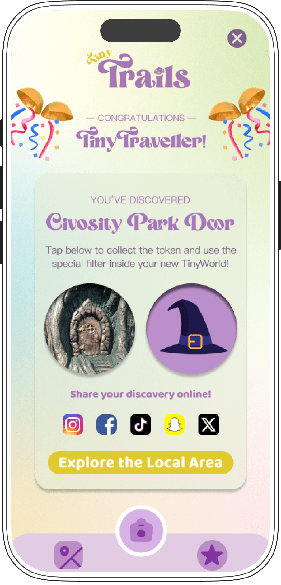 Through the integration of AR and gamification, TinyTrails transcends the single, static interaction initially experienced (i.e., simply stumbling across the Tiny Door), to something more immersive and expansive.